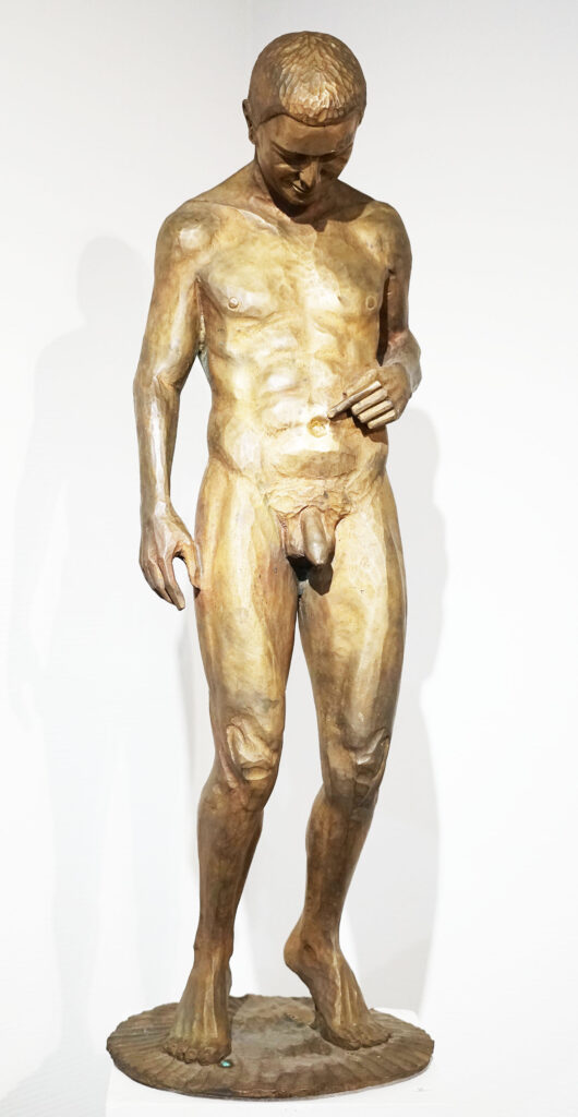 Avant de pénétrer dans cette Galerie qui nous est si chère, on est aujourd’hui accueilli par un athlétique soldat romain, qui rêve aux chevaux de son quadrige ! Et puis on entre et on regarde, en s’adaptant.